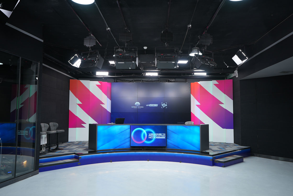 Энэхүү өрөө нь Телевизийн студийн стандартад нийцсэн гэрэлтүүлэг, мониторингийн хэсэг, 3 өнгийн backdrop, хөтлөгчийн тайзаас бүрдэх ба энэ хэсэгт төрөл бүрийн нэвтрүүлэг,шууд дамжуулалт подкаст зэрэг контент бүтээх боломжтой студи юм.